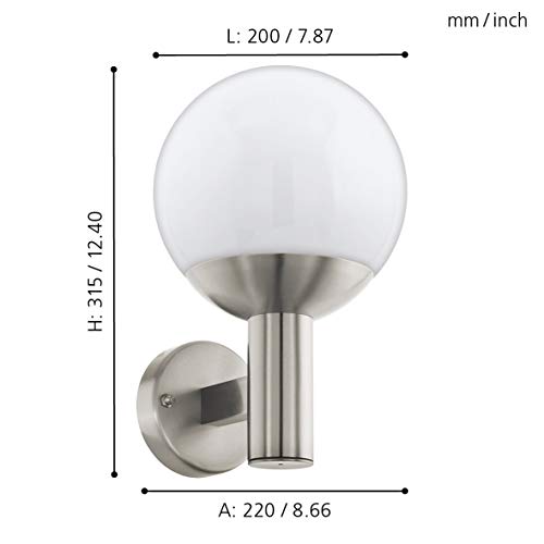 Eglo Connect Lampada da Parete per Esterni Nisia-C, Smart Home, Dimmerabile, IP44. in Acciaio Inox e Vetro, Argento, Bianco, Bianco Caldo