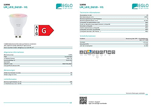 Eglo Connect Lampadina LED GU10, 5 Watt Equivalente a 50 Watt, 345 Lumen, Dimmerabile, Temperatura di Colore e Colori RGB Regolabili, Lampadina LED, Faretto LED Ø 5 cm