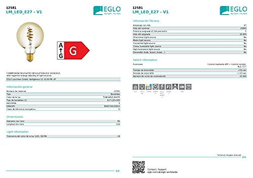 Eglo connect Lampadina a LED E27, Smart Home Vintage, ambra, a spirale, 5,5 Watt (equivalente a 35 Watt), 400 lumen, E27 LED dimmerabile, temperatura di colore regolabile, lampadina LED G95, Ø 9,5 cm