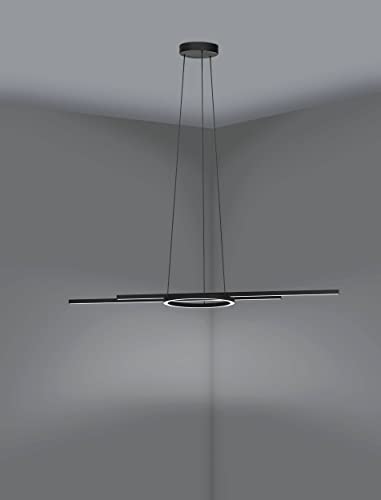 La lampada a sospensione Smart Home LED è realizzata in metallo nero con due profili LED dritti sospesi, a cui si aggiunge un profilo LED ad anello;