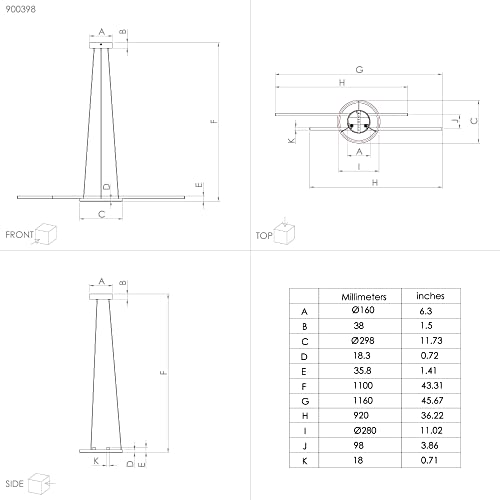 Dimensioni dell'apparecchio: Lunghezza: 116 cm, Larghezza: 30 cm, Altezza: 110 cm;