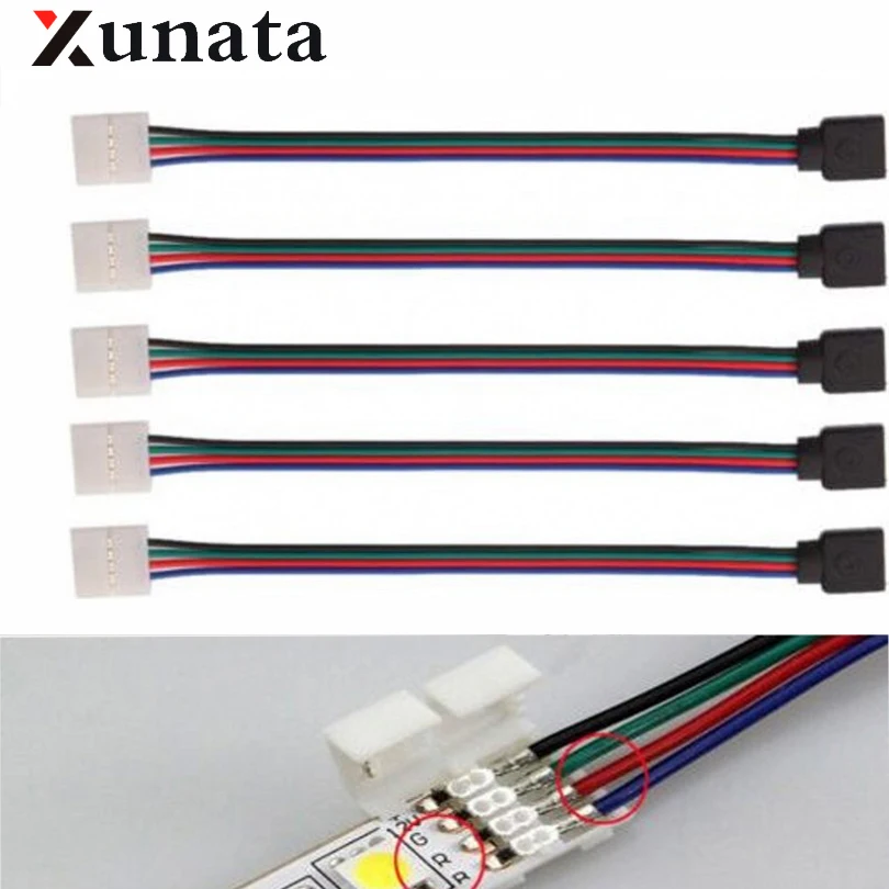 10mm 4 Pin LED RGB Connector Adapter Cable Clip Solderless connector, 5pcs/Lot, Free shipping