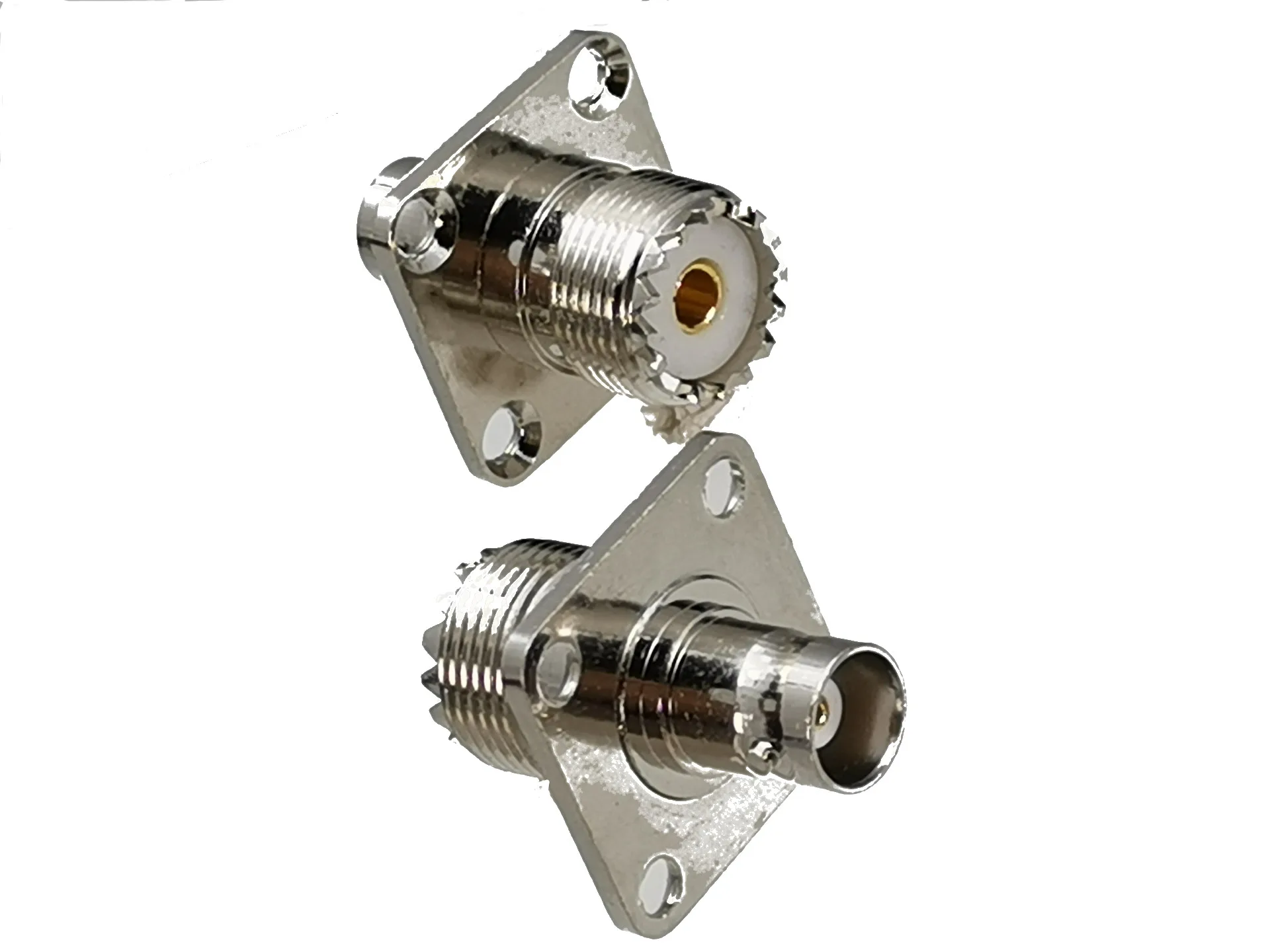 1pcs Connector Adapter UHF SO239 Female Jack to BNC Female Jack 4-Holes Flange RF Coaxial Converter Straight New