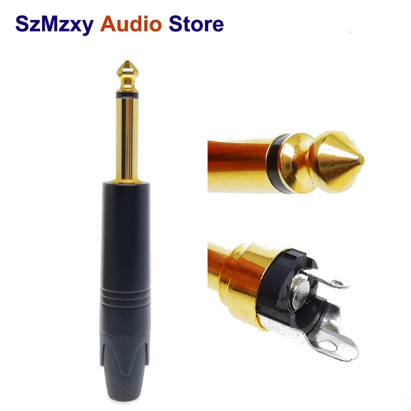 2Pcs Mono 6.35mm Jack 6.3mm Male Plug Connector Aluminum Tube Brass Gold Plated 1/4 Inch Microphone Plug Audio Cable Connector