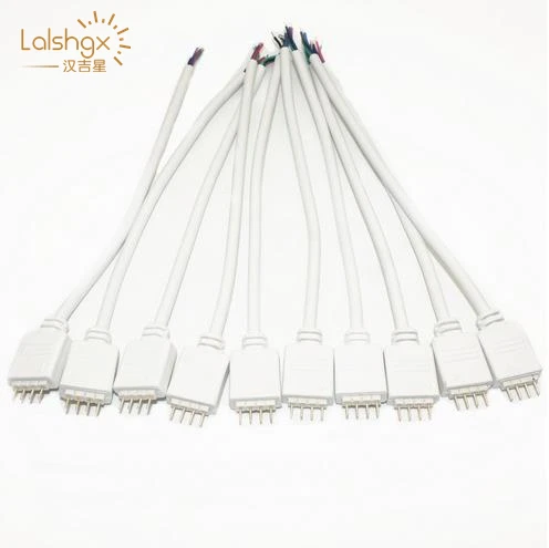 10 pcs Male Connector Cable 4pin Wire for DC12V 24V RGB 5050 3528 RGB Led Strip White color