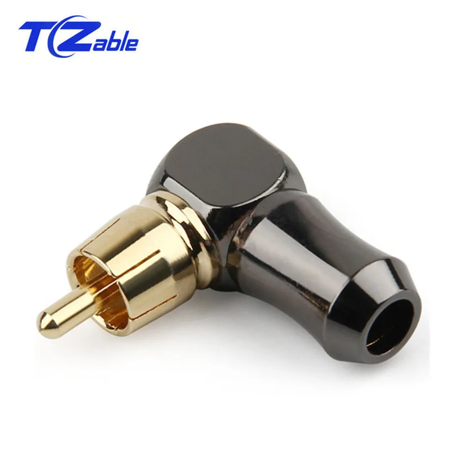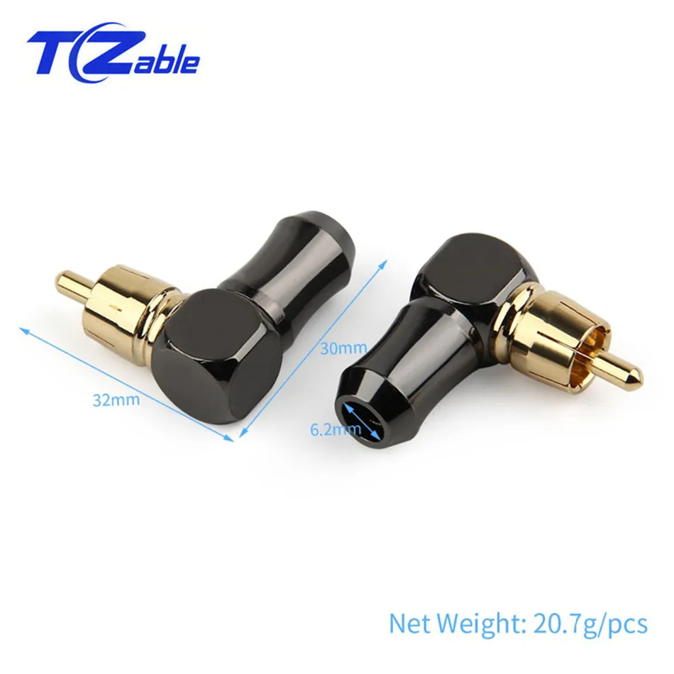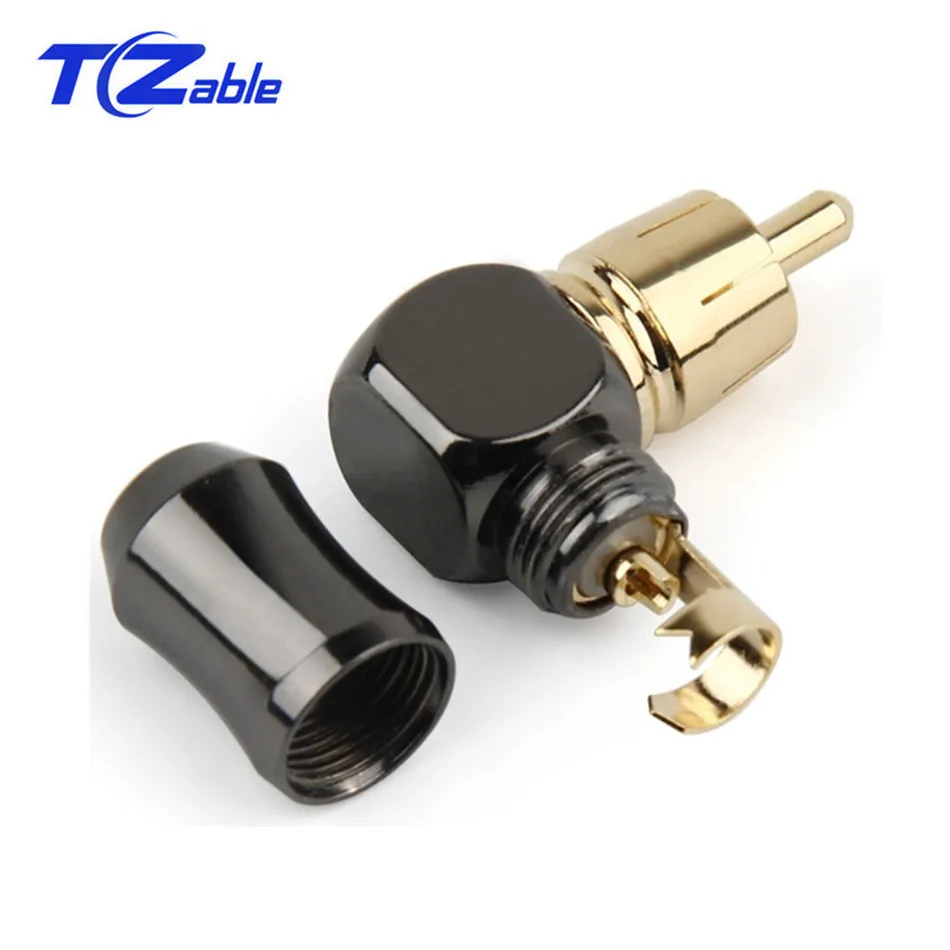2PCS RCA Connector 90 degree Male Plated Solder Wire Audio Adapter L type Curved RCA Right Angle Elbow Converter RCA Plug Gold