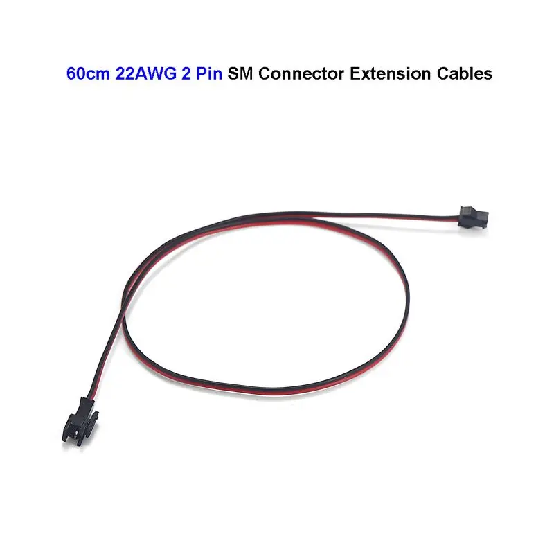 2 Pin SM JST Connector Extension Cable 22AWG 60cm Female to Male Electric Copper Wires For LED Rigid Strip Ni-Cd Battery Pack