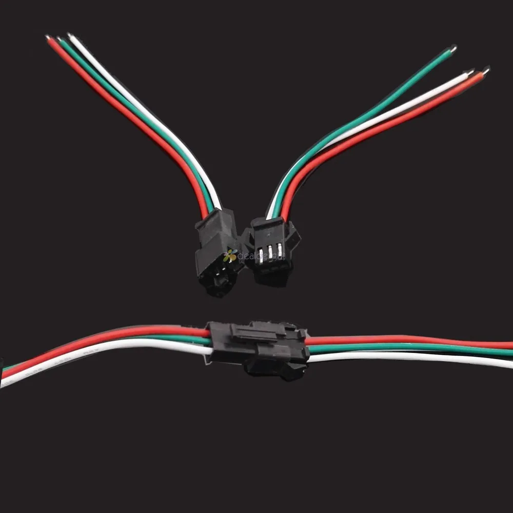 10 Pair 3pin JST Connector Male & Female Cable Wire for WS2811 WS2812B RGB LED Strip Free shipping