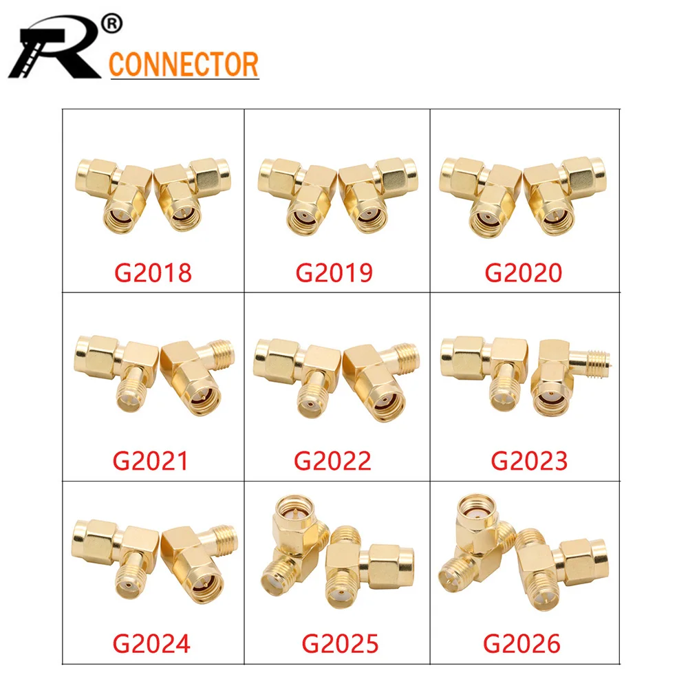2PCS SMA to SMA Connector male female RP SMA to SMA male RPSMA Straight Right angle 3 way RF adapter Converter