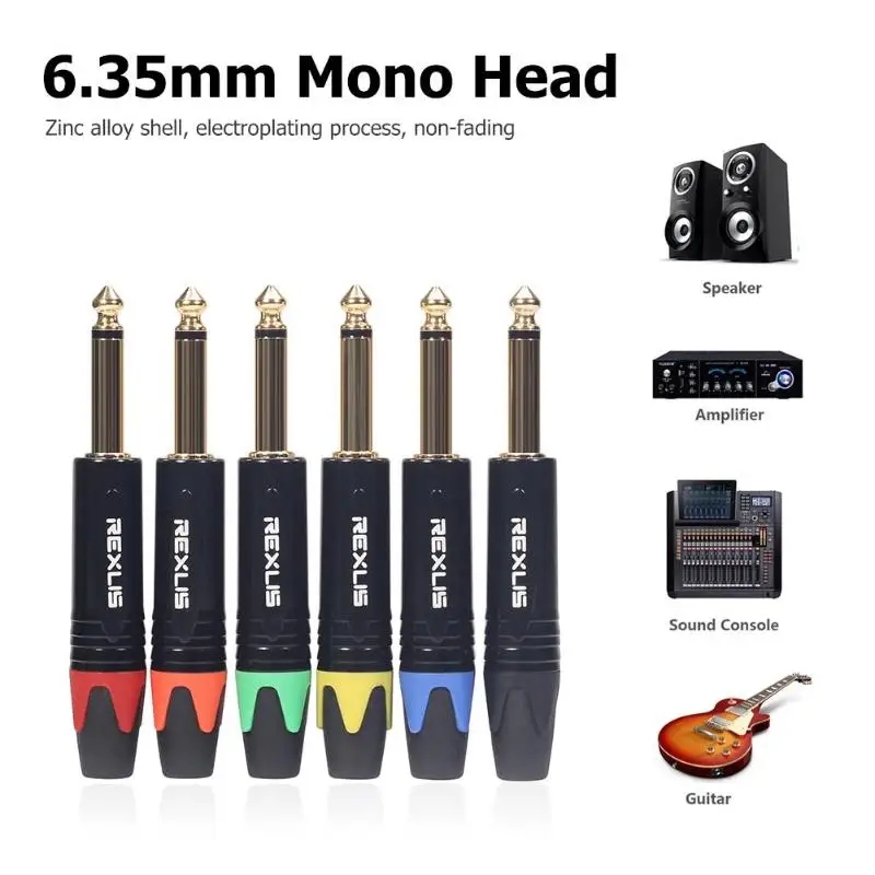 6.35mm Mono Jack Male Plug Connector DIY Soldering Plug for Microphone Support Dropshipping