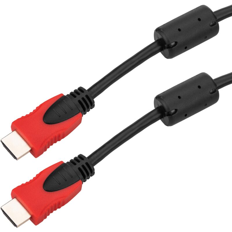 È un cavo HDMI 1.4 (High Definition Multimedia Interface) per la trasmissione di audio digitale, video digitale ed ethernet su lunghe distanze senza perdita di segnale, grazie all'elettronica di estensione situata in ciascuno dei connettori. Ha ferriti a ciascuna delle sue estremità che eliminano le interferenze elettriche che possono essere generate. Il cavo ha una lunghezza di 2 me il suo spessore è di 6 mm. Caratteristiche del prodotto: CARATTERISTICHE: cavo da 2 m che consente la trasmissione di audio e video attraverso una connessione bidirezionale tra dispositivi con ingresso HDMI-A femmina senza perdere la qualità video. Non necessita di alimentazione esterna per il suo funzionamento (HDMI alimentato). Supporta HDMI V1.4. DESIGN: ha un design di alta qualità in nero e rosso, che gli conferisce un aspetto elegante. È un filo da 30 AWG (Misura dei cavi elettrici), 0,255 mm di diametro e 0,0503 mm2 di area. SPECIFICHE: Ogni connettore ha un'elettronica progettata per amplificare