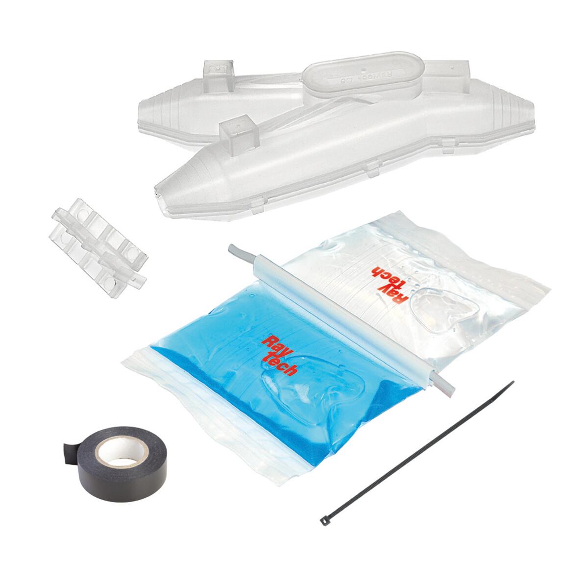 composto da due semigusci di materiale plastico antifrattura e da isolante bicomponente a reticolazione rapida (solo 10 minuti a 23°C) di riempimento. diametro minimo cavo mm 8 diametro massimo cavo mm 32. Un modo semplice e sicuro per proteggere le connessioni dall'ossidazione, umidità ed evitare conseguenti disservizi all'impianto.. Ideale per impedire infiltrazioni d'acqua o umidità all'interno delle connessioni.. Ideale per tutte le connessioni in ambienti esterni: impianti d'illuminazione di giardini, gradinate e scalinate, passaggi pedonali ecc.. Il gel di riempimento è facilmente rimovibile in caso di modifiche all'impianto.
