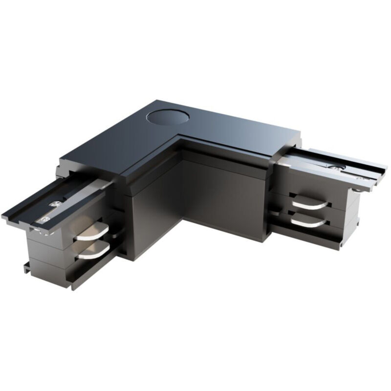 Collezione Accessories For Tracks Trinity CONNETTITI CON L'ESSENZIALE Il connettore angolare destro per binario in plastica nera è un componente essenziale del sistema di binari progettato per il montaggio a incasso. Questo tipo di connettore consente di unire due binari, permettendo di creare configurazioni di illuminazione su più livelli in modo facile e veloce.
