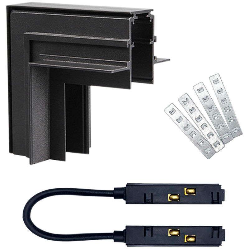 Kit Connettore Angolare e Snodabile Binari magnetici Incasso tra parete soffitto La combinazione Connettore Meccanico Angolare 90° Verticale e il connettore snodabile per Binari magnetici ad Incasso 48V è stata realizzata per creare l'angolo tra due Binari magnetici ad Incasso.Questi connettori sono per formare un angolo tra soffitto e parete (VEDI IMMAGINE, RIQUADRO ROSSO). Il connettore meccanico angolare è presente con le alette, quindi con sezione identica al Binario ad Incasso. Questo non è elettrificato, perciò per portare la tensione di corrente 48V da un binario all'altro, è necessario inserire anche il connettore snodabile 48V. Caratteristiche tecniche: Colore: nero Materiale: alluminio resistente Certificato CE Grado di protezione: IP20 Dimensione: 100 x 100 x 47 mm Contenuto della confezione: 1 Connettore angolare 4 Alette in metallo aventi dentini (vedi foto) 1 Connettore snodabile 48V