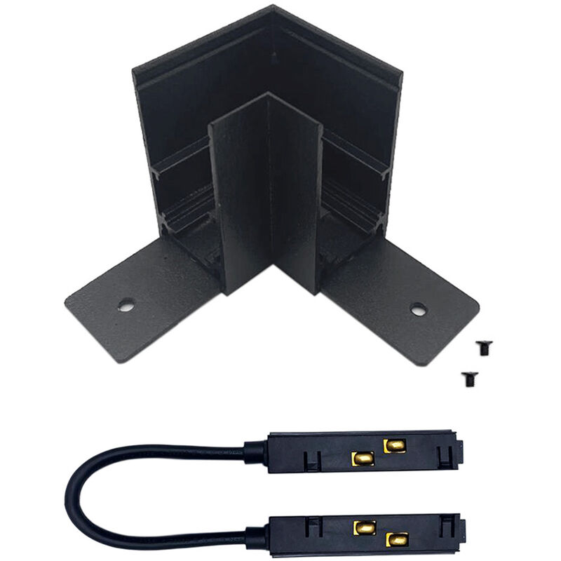 Kit Connettore Angolare e Snodabile Binari magnetici 48V a sospensione Silamp La combinazione tra il Connettore Meccanico Angolare 90° Orizzontale e il connettore snodabile per Binari magnetici 48V a sospensione è stata realizzata per creare e alimentare l'angolo tra due Binari magnetici a sospensione su un piano. Si presenta senza sporgenze, quindi totalmente a scomparsa. Il connettore meccanico non è elettrificato, perciò per portare la tensione di corrente 48V da un binario all'altro, è necessario inserire anche il connettore snodabile 48V. Caratteristiche tecniche: Colore: nero Materiale: alluminio resistente Certificato CE Grado di protezione: IP20 Dimensione:72 x 72 mm Altezza: 50 mm Contenuto della confezione: 1 Connettore angolare orizzontale 2 Vite 1 Connettore snodabile 48V