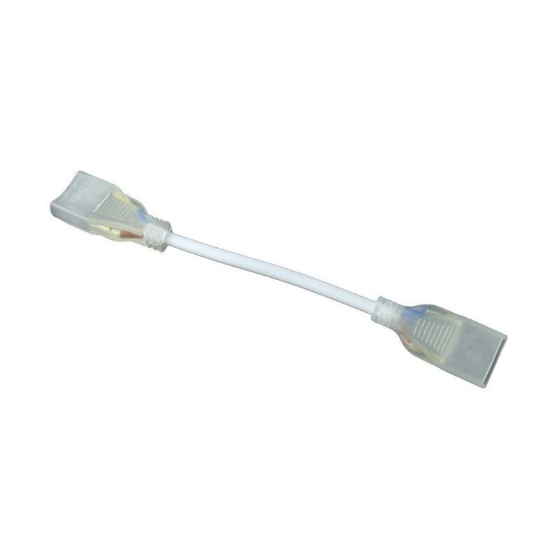 Connettore cavo TIRA 220V Monocolor 20mm cavo per interconnettere strisce LED 220V SMD2835. Protezione IP65 per l'esterno, richiede il riempimento del connettore con silicone a stagno. Lunghezza approssimativa di 200 mm con connettori.