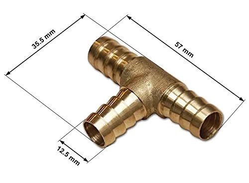 TI TIPO T PER CONNETTORE CODA TUBO IN OTTONE SOLIDO/ARIA COMPRESSA/GAS (12mm)