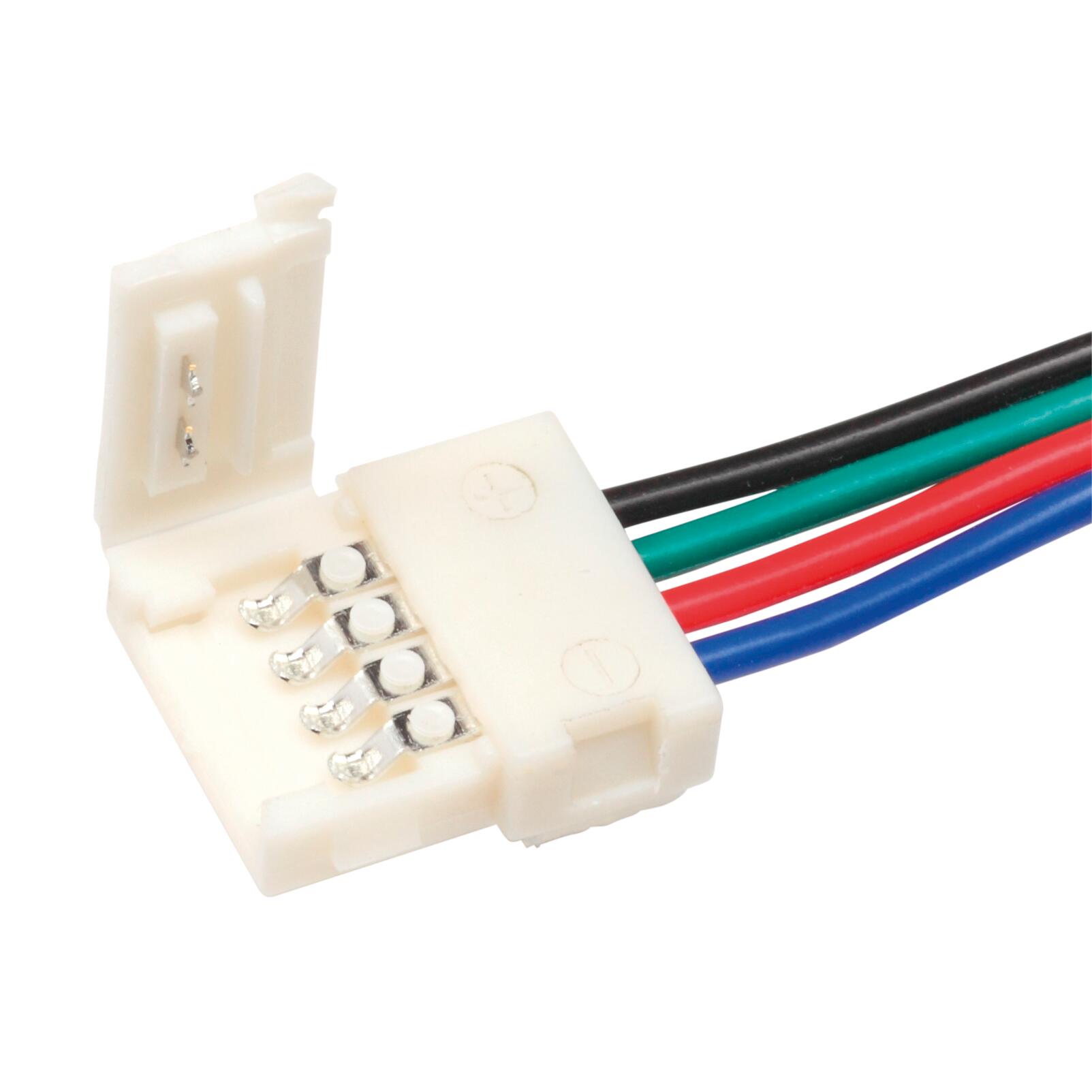 Connettore 10mm con cavetto 15cm per strisce LED RGB. Confezione 5 pezzi.. Connessione di strisce LED RGB