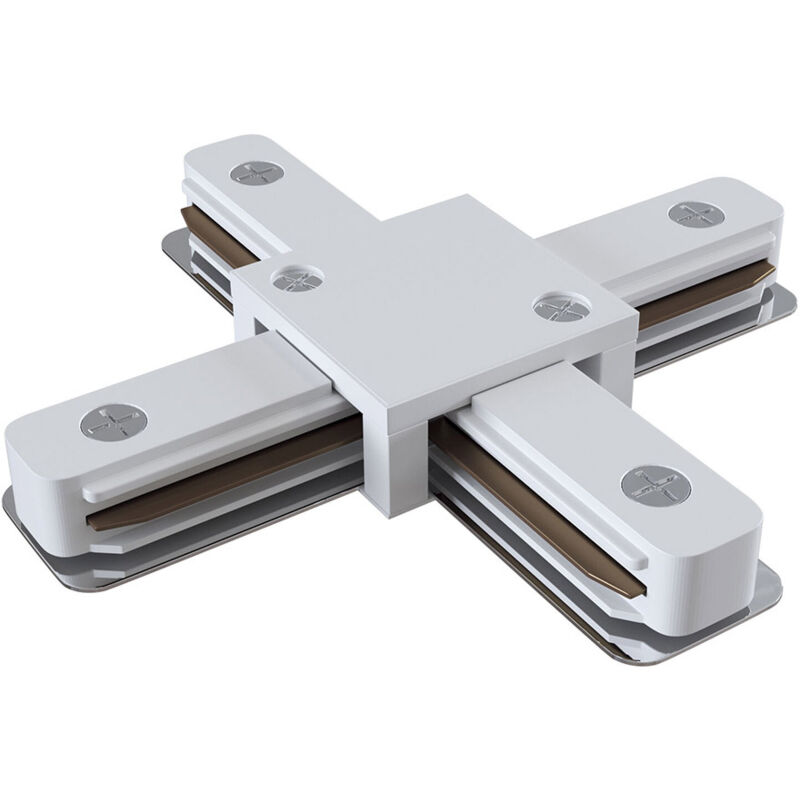Collezione Accessories For Tracks Unity CONNETTITI CON L'ESSENZIALE Il connettore a X per binario in plastica bianca è un componente essenziale del sistema di binari progettato per il montaggio a incasso. Questo tipo di connettore è in grado di collegare quattro binari in modo sicuro ed efficiente, consentendo di creare configurazioni a croce o a quadrato a seconda delle esigenze di illuminazione dell'ambiente.