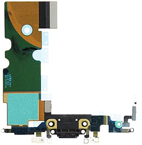 Connettore dock ricarica per iPhone 8 iPhone SE 2020 A1863 A1905 A1906, A2275 A2298 A2296 Nero Charger Port Presa di Ricarica Cavo Flessibile con Audio Jack,Microfono,Antenna di Ricambio,Cacciaviti