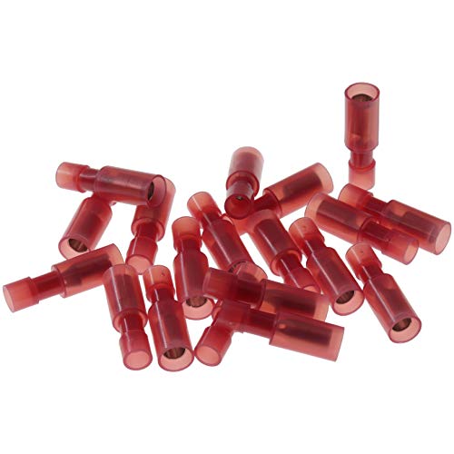 Connettore rotondo 0,5 - 2,5 mm², connettore in nylon isolante, guaina a compressione, connettore blu o rosso (50 pezzi, rosso: manico/0,5 - 1,5 mm²)