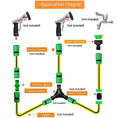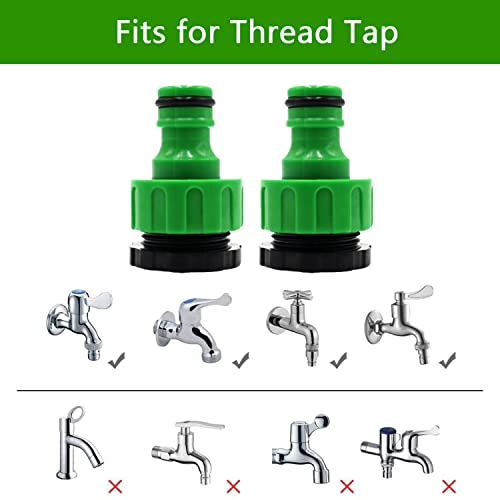 Connettori per rubinetto da giardino 2 in 1: ogni connettore per rubinetto può essere separato in 2 parti, una parte verde e l'altra è nera, la parte verde funziona con rubinetto da 19,1 mm la parte nera funziona con rubinetto da 12,7 mm;