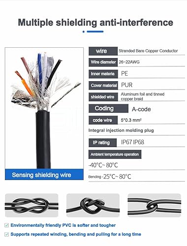 DRRI Connettore sensore M12 5pin A codice maschio a femmina cavo industriale modellato per robot e catene di trascinamento (RA M12 5P femmina)