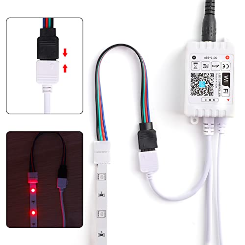 Connettore a forma di L: Il connettore a forma di L a 4 pin collega 2 rotoli di strisce luminose flessibili monocolore 3528 o 5050. Senza saldatura e senza fessure, collegare le strisce in modo facile e veloce.