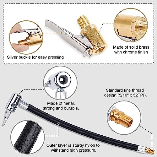 [Materiale di alta qualità] L'adattatore del tubo flessibile di gonfiaggio degli pneumatici utilizza il tubo esterno intrecciato ad alta pressione. L'adattatore valvola per pneumatici è realizzato in ottone con finitura cromata ed è durevole.
