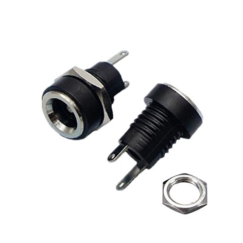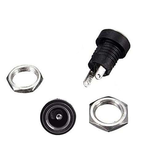 10 connettori adattatori jack da 5,5 mm x 2,1 mm, maschio, per spina di alimentazione CC + 10 connettori adattatori jack, femmina, per supporto filettato + 10 tappi protettivi in gomma