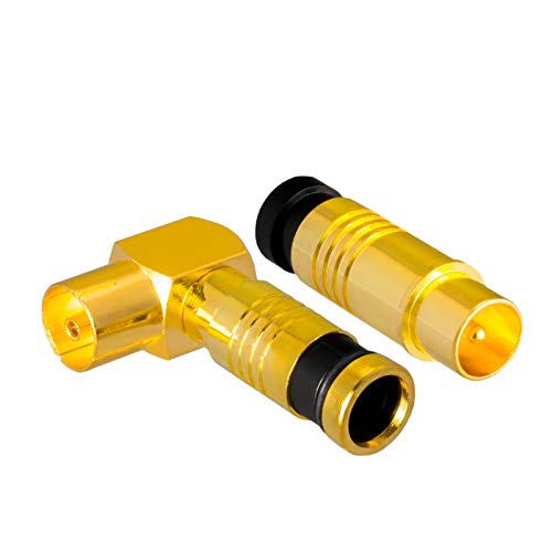 Set di connettori per antenna 1 spina dritta e 1 presa angolare per la visione del cavo DVB-C Radio DVB-T2 TV IEC maschio+femmina spina di compressione vegetale per cavo antenna cavo BK impianti 90°