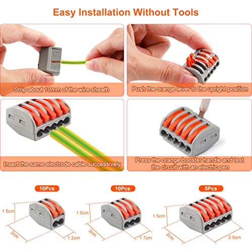 Connettori per fili compatti, Blocchi connettori elettrici, Terminali per connettori a leva Connettori terminali per cavi solidi, incagliati e flessibili (25 pezzi)