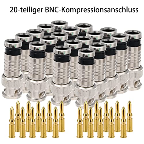 20 connettori di compressione BNC da 75 Ohm, con perno in rame per RG58-59 Crimper video Plug Estensione coassiale Siam Cable Crimper Adattatore Male CCTV Home Security Camera Antenna