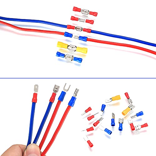 【Cosa ottieni】 I capicorda elettrici assortiti vengono forniti con 280 pezzi per scopi diversi. Una quantità sufficiente garantisce il tuo uso quotidiano per vari scopi. Tutti i connettori a crimpare isolati sono perfettamente confezionati in una scatola di plastica, che li rende facili da riporre e comodi da trasportare.