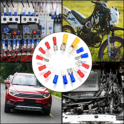 【Materiale Premium】 Questi connettori per cavi elettrici sono realizzati in rame e PE di alta qualità, che sono robusti, durevoli per un uso prolungato, facili da crimpare e tengono saldamente il cavo. Manicotto isolante, rivestimento in plastica di alta qualità, inserto di contatto a crimpare abbinato, isolato e ignifugo, sicuro e affidabile.