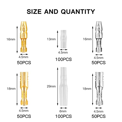 [Cosa otterrai] 3,9 mm proiettile in ottone connettore, ricevi 100 palline d'argento capicorda elettrici a crimpare, 100 palline d'oro capicorda elettrici a crimpare, 100 manicotti isolanti maschi, 100 manicotti isolanti femmine