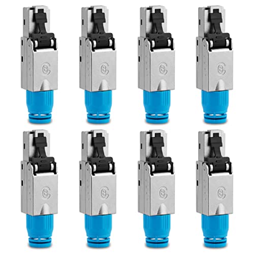 Il connettore di rete CAT 8 CAT 8.1 RJ45 supporta trasmissioni Gigabit - per frequenze operative fino a 2000 MHz CAT 6a, CAT 7, CAT 8.1, T568A, T568B, PoE Plus - riduttore per cavi di diversi Ø 6,0 - 9,5 mm - per cavi patch e di posa
