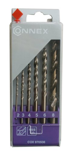 Connex COX970506 - Set di punte per trapano HSS elicoidali, lega al cobalto, diametro da 2 a 8 mm