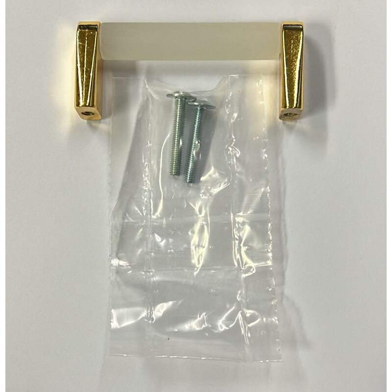 CONNEX - MANIGLIA IN ACCIAIO E VETRO BIANCO CON ANGOLARI ORO 64MM Aggiunge un tocco audace e moderno alla tua casa Costruzione robusta e robusta Comodo da impugnare Facile da tirare e rimuovere La superficie è liscia e priva di bave