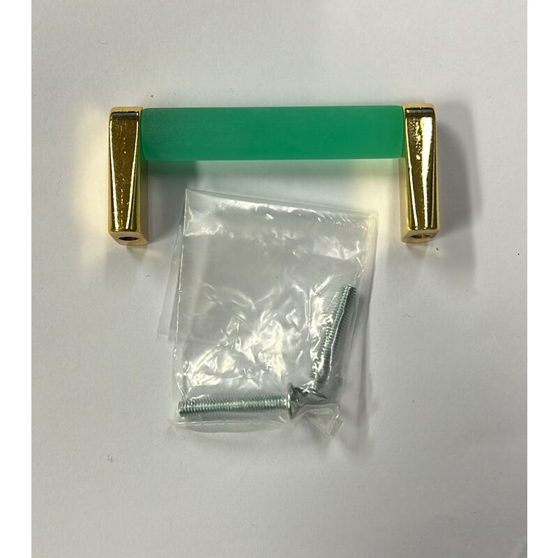 CONNEX - MANIGLIA IN VETRO VERDE CON ANGOLARI ORO INTERASSE 64MM Aggiunge un tocco audace e moderno alla tua casa Costruzione robusta e robusta Comodo da impugnare Facile da tirare e rimuovere La superficie è liscia e priva di bave