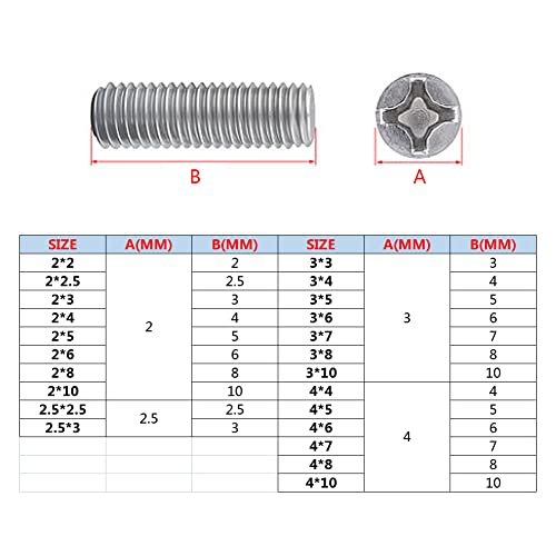Sistema metrico: la vite senza testa include alcune dimensioni metriche piccole comuni, sostituiscono facilmente una vite di fermo persa o rotta.