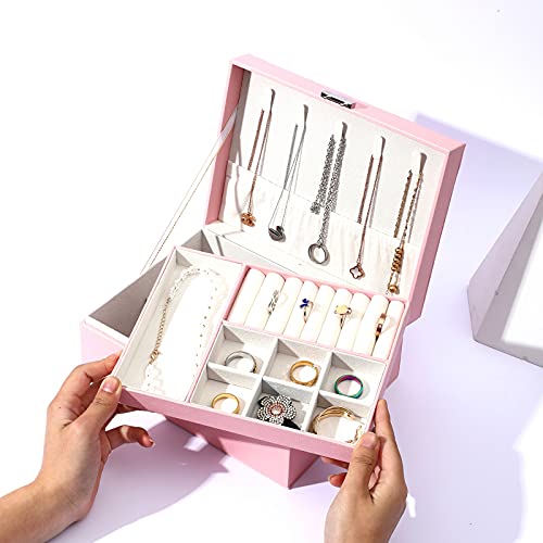 Per conservare collane, anelli, orecchini, braccialetti, orologi, scatole per gioielli da donna (rosa)