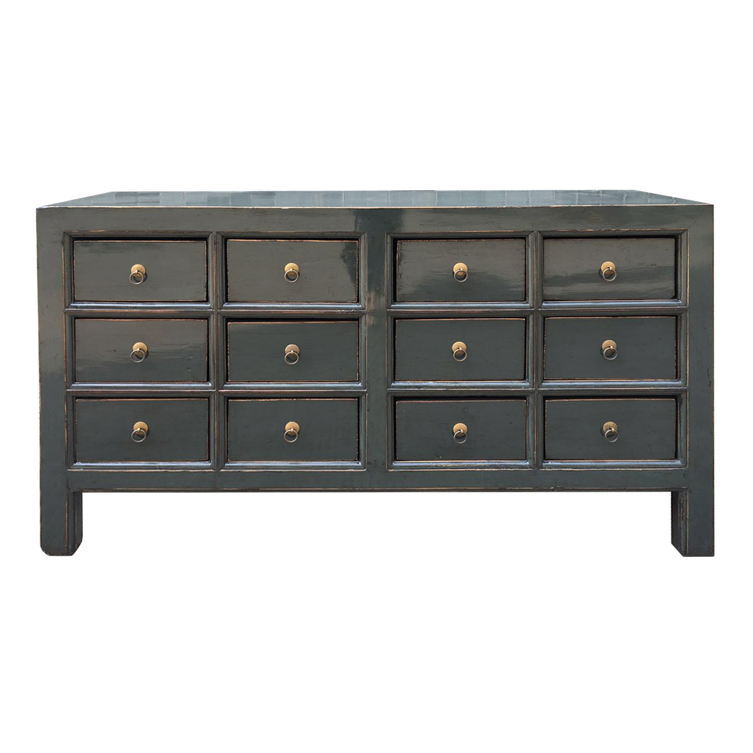 Questo mobile in legno della linea Ancient è perfetto come consolle e per arredare con uno stile retrò tutti i tuoi spazi, dalla camera alla zona living. In elegante colore grigio, è caratterizzata dai 12 cassetti, perfetti per riporre ordinatamente oggetti e documenti. Pulire con un panno umido e prodotti non abrasivi. Dimensioni: 143x82x41 cm.