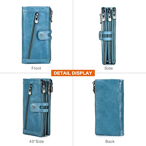 Contacts RFID Blocking Portafoglio lungo da uomo in vera pelle,con chiusura lampo multifunzion porta pochette Cellulare retro marrone scuro