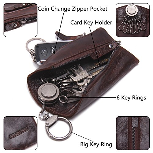 Contacts Portafoglio portachiavi in vera pelle con cerniera portamonete portamonete, Marrone scuro, Taglia unica, vintage