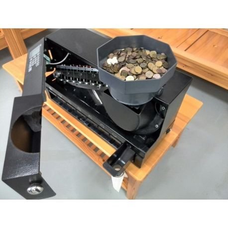 contadora e separatore di monete digitale per uso professionale molto veloce (mas di 1000 monete al minuto) con una telaio così portante e compatta che rende la vita utile in condizioni normali utilizzo sia di fino a 20 anni di lavoro a sue prestazioni. Il grande imbuto con capacità per circa 1500 monete la rendono ideale per l' utilizzo in panche, settore alberghiero, casinos e altri settori in i che si potete fidarvi alta quantità di monete.
