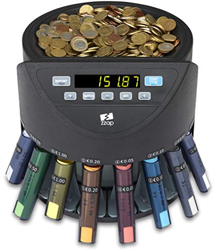 Capacità dell'imbuto: 600 monete. Si arresta automaticamente quando l'imbuto è vuoto o quando un portamonete è pieno. Funzione di addizionamento. Facile e veloce da usare, meccanismo anti-polvere, robusto e affidabile.