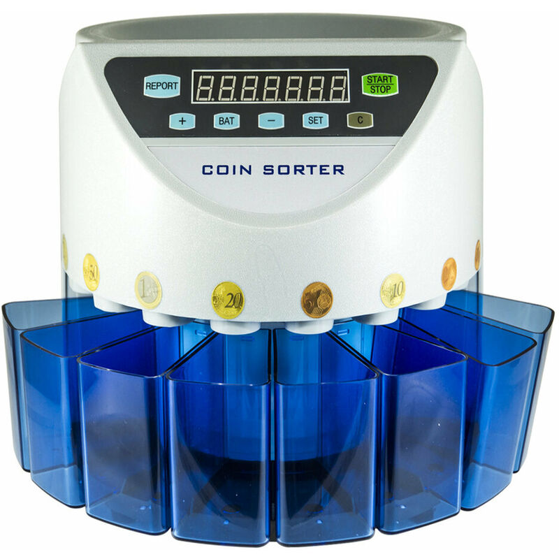 L nostro contatore di monete e' dotato di un display a LED a 7 cifre e ha un pannello di controllo semplificato, che rende l'operazione molto semplice e il display e' chiaro. Se si imposta il numero di ordinamenti la macchina si arresta automaticamente non appena viene raggiunto il numero preimpostato e si puo' contare ogni compartimento monete e il risultato totale. Ha anche un'elevata capacita' della tramoggia. Di solito vuoi contare od ordinare le monete in euro miste, il nostro contatore di monete puo' finire automaticamente a 300 monete al minuto, il che e' facile, efficiente e veloce E' presente un sensore integrato per la pulizia delle monete per rimuovere oggetti estranei quindi le monete anomale possono essere rimosse dal retro. Con solo 3 viti puoi aprire il contatore delle monete senza sforzo. ll nostro contaminate professionale e' adatto a negozi, banche, ristoranti e aziende o selezionatori per l'intera area di business