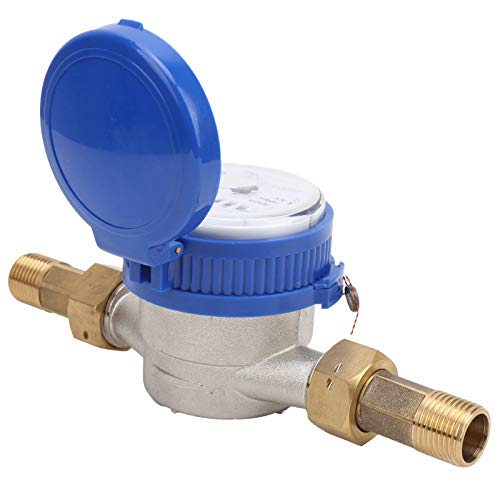 Contatore per acqua fredda con puntatore, contatore meccanico per acqua fredda da 1/2 pollice per giardino e uso domestico, installazione orizzontale, con 2 x dado, 2 x adattatore e 2 x guarnizione.