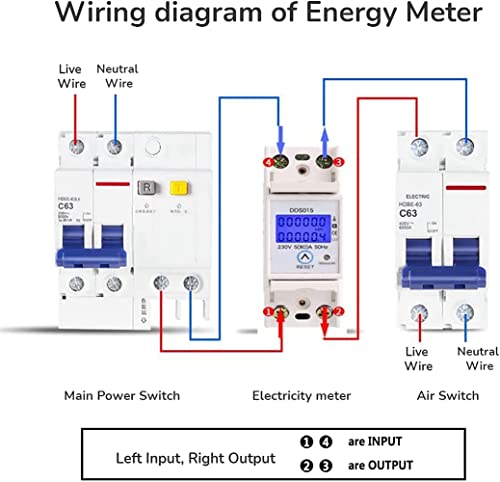 【Display LCD a doppia fila】Questo misuratore di energia può misurare l'energia attiva positiva nella misurazione dell'energia elettrica, che viene chiaramente visualizzata dallo schermo retroilluminato LCD. La riga superiore mostra il misuratore di consumo energetico temporaneo e può essere cancellato;
